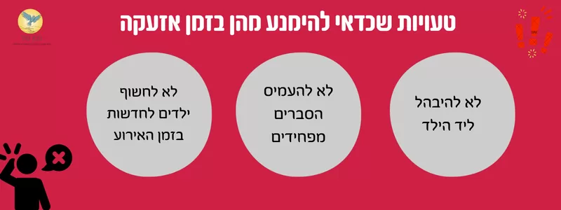 המשמעות היא שהדרך הטובה ביותר לעזור לילד בזמן אזעקה אינה רק להסביר לו מה קורה, אלא בעיקר להעניק לו חוויה של ביטחון ונוכחות.