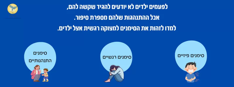 שינויים בהתנהגות, קשיי שינה, הסתגרות חברתית, ירידה בתפקוד בבית הספר או תלונות גופניות חוזרות יכולים להיות סימנים לכך שהילד מתמודד עם עומס רגשי.