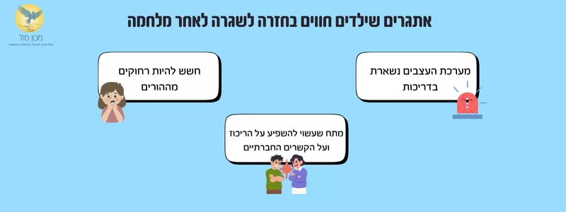 כאשר ילדים חווים תקופה של מתח ביטחוני, מערכת העצבים שלהם עלולה להישאר במצב של דריכות גם לאחר שהמצב נרגע יחסית. הגוף והנפש מתרגלים להיות במצב של ערנות גבוהה, ולכן המעבר חזרה לשגרה לא תמיד מתרחש מיד.