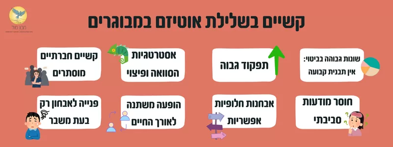 אוטיזם בגיל המבוגר יותר קשה לאבחון, כיוון שאת רוב הסימנים אנו רואים בצורה בולטת יותר בילדות.