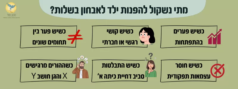 להתייעצות עם מומחה וקביעת מועד לביצוע אבחון בשלות- לחצו כאן